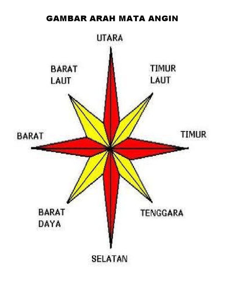 Utara (U): Arah ini nunjuk ke kutub Utara. Kalau kita berdiri menghadap Utara, berarti punggung kita menghadap Selatan.